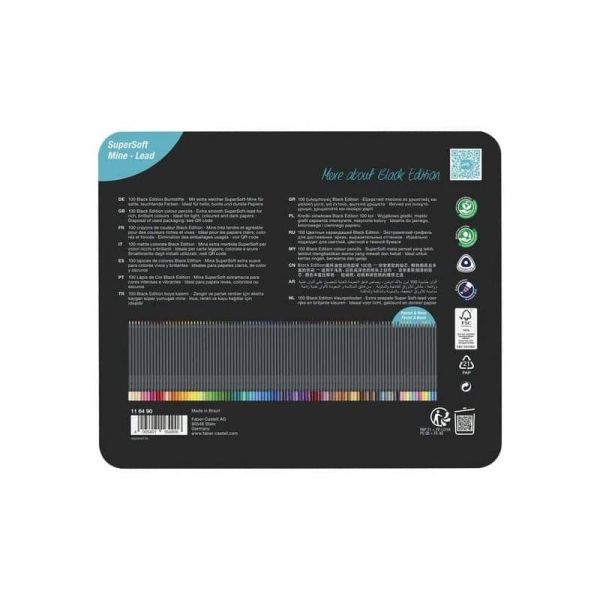 الخشب الأسود والرصاص فائق النعومة: لون نقي؛ خشب أسود علبة معدنية سوداء تحتوي على 100 قلم رصاص ملون من الإصدار الأسود؛ علبة معدنية مع نقش Black Edition؛ سلسلة فائقة النعومة للحصول على تأثيرات رائعة حتى على الورق الداكن أو الملون؛ أقلام ملونة على شكل مثلث مريح؛ الألوان الزاهية. لمسة لونية ناعمة جدًا؛ الرصاص محمي ضد الكسر بواسطة روابط خاصة؛ الخشب من الغابات المستدامة المعتمدة؛ الإنتاج المحايد للمناخ؛ حالة معدنية من 100؛
