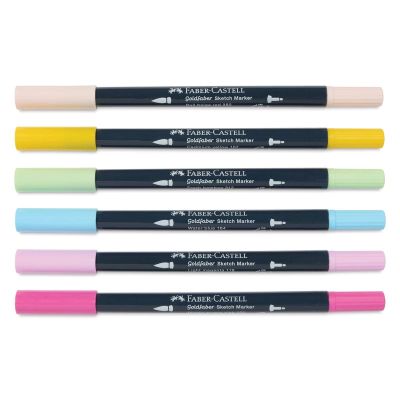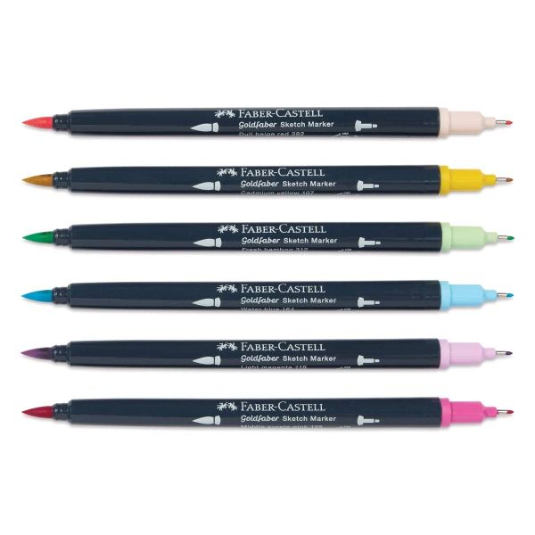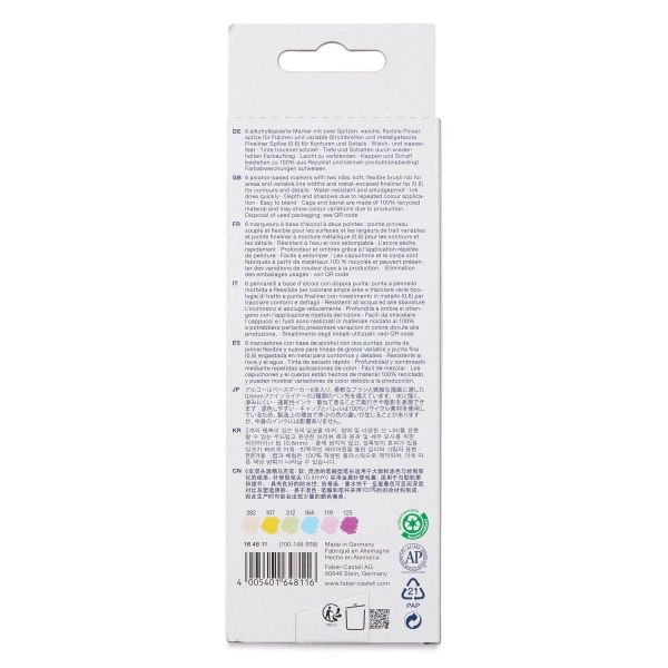 قلم تحديد ذو أساس كحولي مع شريحتين يجف الحبر بسرعة العمق والظلال بسبب طبقات تطبيق الألوان المتكررة مقاوم للماء ومقاوم للتلطخ الأغطية والأسطوانة مصنوعة من مادة معاد تدويرها بنسبة 100% وقد تظهر اختلافات في اللون بسبب الإنتاج رأس فرشاة ناعم ومرن للمناطق وعرض الخطوط المتغيرة وطرف محدد مغلف بالمعدن (0.6) للخطوط والتفاصيل محفظة من 6، كاواي