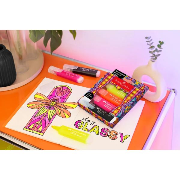 طقم قلم ماركر فسفورى شفاف + قلم ماركر Black فابر كاسيل /4 TXTLINER 46 رقم 254693