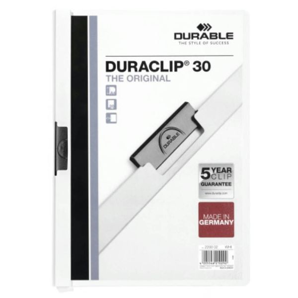 دوسيه بلاستيك بكلبس معدن ديورا كليب 30 ORIGINAL أبيض رقم 220002