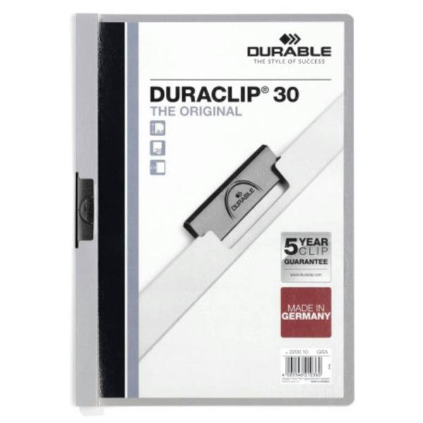 دوسيه بلاستيك بكلبس معدن ديورا كليب 30 ORIGINAL رمادى رقم 220010