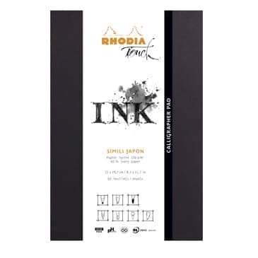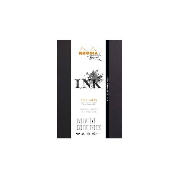 130 جم/م2 ورق سيميلي ياباني طبيعي ملتصقة في الأعلى، وسادة مدعومة بالقماش غطاء بطاقة مايا أسود 270 جم/م2 شعار روديا تاتش منقوش على الغطاء الأمامي 50 ورقة مثقوبة دقيقة قابلة للفصل ورقة فارغة