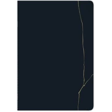 Soft cardboard cover, gold screen printing. 64 lined white pages. Visible thread-sewn binding. 90g Clairefontaine velvety vellum paper. Format: 21x29.7cm.