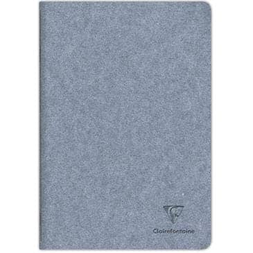 A4 thread-stitched notebook 96 lined pages, jeans This high-quality paper made from recycled raw materials combines an exceptional feel and appearance with a sustainable production concept. The denim paper is made from 50% cellulose-free wood from sustainably managed forests and contains 50% fibers from recycled jeans. Embossed Clairefontaine logo.
