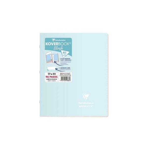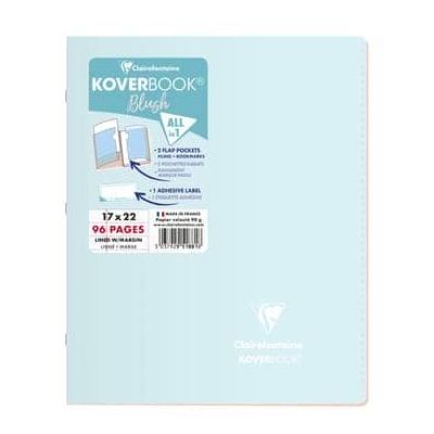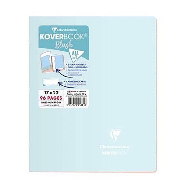 Koverbook Blush Polypro Stapled Notebooks 170x220, Lined and Margin Fresh from Clairefontaine, each Koverbook in this collection has complementary colour tones on the front and inside, plus recognisable brand logo in white print on the cover A solid resistant polypropylene cover with internal pockets, to use both as a bookmark and to store loose documents when required 48 sheets of Clairefontaine brushed vellum 90gsm paper Polypro stapled cover, ultra resistant 1 Adhesive label supplied for personalising.