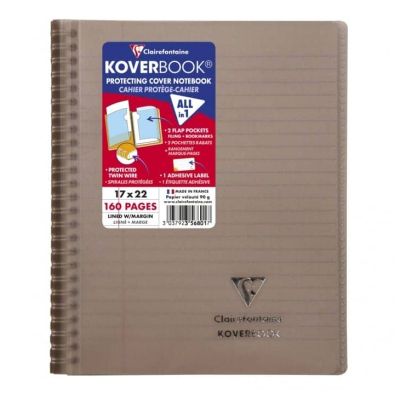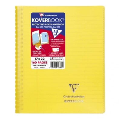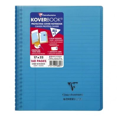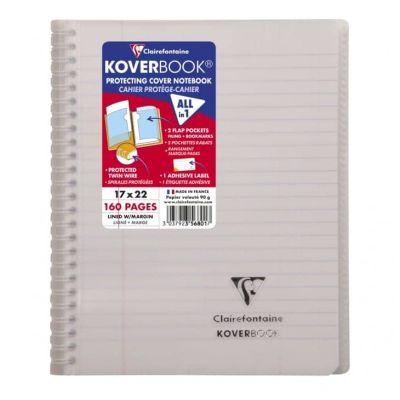 Koverbook full wraparound binding notebook 17x22cm 160 lined pages + margin transparent polypropylene cover Koverbook the original: notebook & notebook cover, all-in-one! Full wraparound binding protecting the spirals while allowing the notebook to open fully at 360°.