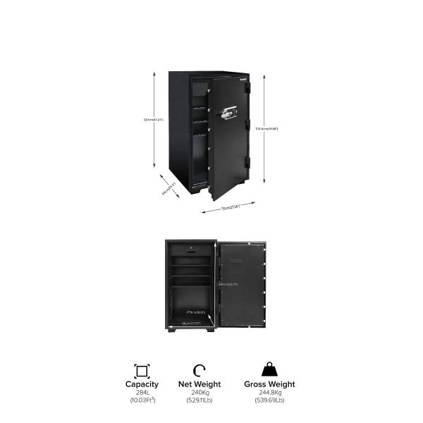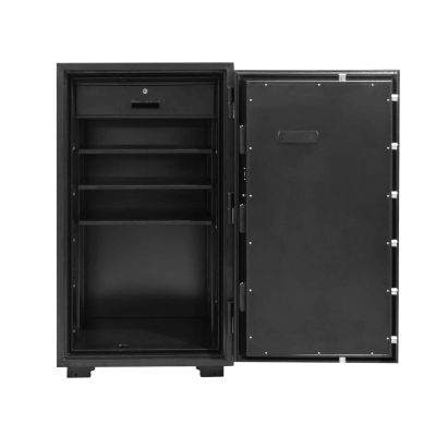 ES120 بيومترية كبيرة جدًا مقاومة للحريق مع قفل إلكتروني وإنذار 126.6 سم × 70 سم × 64 سم 49.84 بوصة × 27.56 بوصة × 25.2 بوصة الحماية من الحرائق تم التحقق من ضمان الحماية من الحرائق لمدة تصل إلى 927 درجة مئوية / 1700 درجة فهرنهايت لمدة 60 دقيقة (ساعة واحدة)، تظل درجة الحرارة الداخلية للخزنة أقل من 177 درجة مئوية / 350 درجة فهرنهايت. الحماية الأمنية ماسح بصمات الأصابع البيومتري مدمج في المقبض على شكل حرف L يمكن تسجيل ما يصل إلى 100 بصمة. يوفر الأمان النهائي قفل الجمع الإلكتروني مجموعة مكونة من 3 إلى 8 أرقام قابلة للبرمجة بسهولة وظيفة القفل بعد 5 إدخالات خاطئة متتالية/بصمات الأصابع، لا تسمح الخزنة بإدخالات مجمعة إضافية لمدة 3.5 دقيقة وظيفة التنبيه يتم تنشيط الإنذار بعد 5 إدخالات خاطئة/بصمة إصبع متتالية أو عند اهتزاز الخزنة أثناء محاولة السطو تصميم جسم سلس، هيكل من الفولاذ الصلب، باب وجسم مقاومان للتطفل توفير حماية أمنية دائمة وموثوقة مفصلات شديدة التحمل لمزيد من الأمان براغي القفل - أكبر بنسبة 75% من الخزائن التقليدية ثمانية مسامير قفل حية كبيرة ثلاثية الاتجاهات تضيف قوة إلى الباب قضبان القفل ثلاثة قضبان قفل بحجم xxL على الجانب المفصلي من الباب مما يضيف المزيد من الأمان لوحة الصلب تصلب يحمي الخزنة من هجمات الحفر الميزات التنظيمية درج قفل واحد ثلاثة أرفف قابلة للتعديل الميزات الداخلية إضاءة LED ساطعة زر إعادة الضبط مع غطاء واقي توجد في حجرة البطارية لبرمجة/إعادة ضبط الخزنة بسهولة قوة يستخدم 4 بطاريات AA (مضمنة) الميزات الخارجية شاشة LCD لرصد الحالة قفل مفتاح تجاوز الطوارئ يستخدم عند نفاد البطاريات أو عند نسيان المجموعة البطارية المساعدة (مضمنة) للاستخدام عند نفاد البطاريات عجلات قابلة للإزالة لسهولة الحركة طلاء مسحوق متين اللون الخارجي أسود
