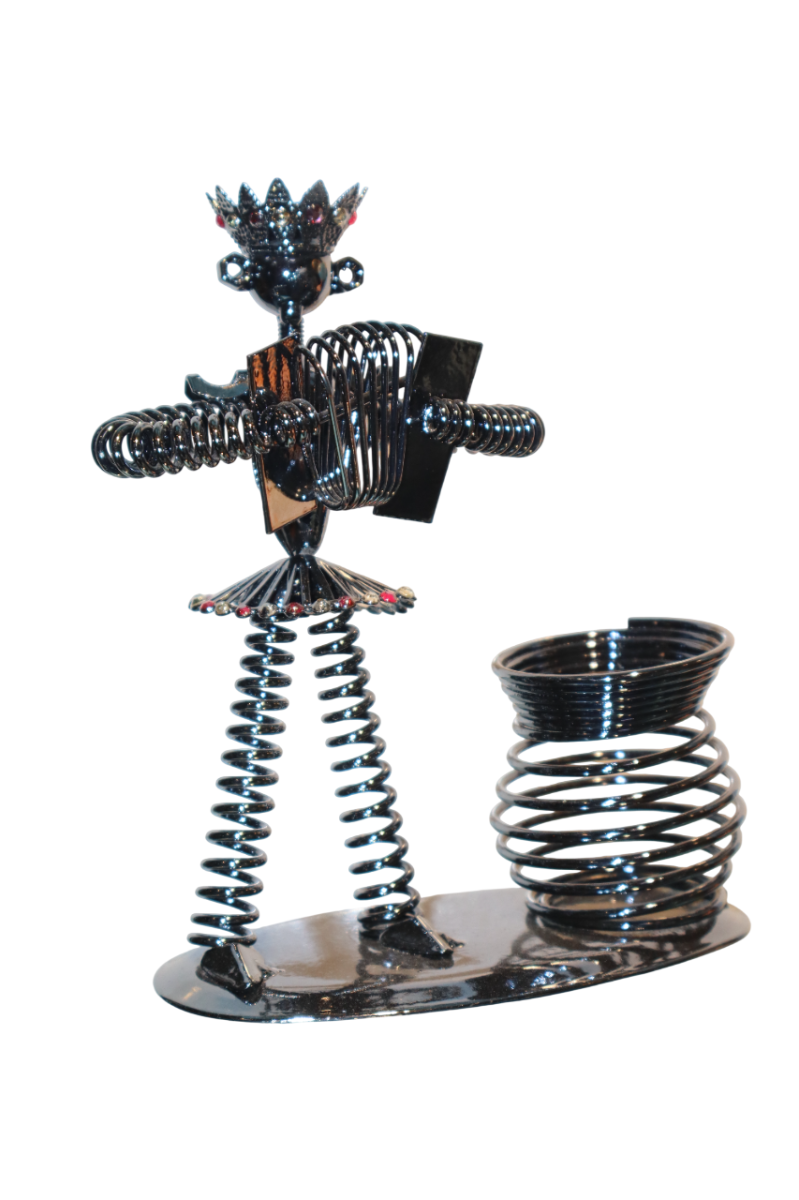 قطعة فنية معدنية رائعة بتصميم بسيط وأنيق، تنبض بالحياة والتميز. صُممت بتفاصيل دقيقة وحرفية عالية تجعلها قطعة فريدة في أي مكان.سطحها مجلفن لمزيد من المتانة، يحميها من عوامل الهواء والاستخدام اليومي. متينة للغاية ومصممة لتدوم طويلاً. قطعة ديكور مثالية تخطف الأنظار، تُضفي لمسة جمالية على مكتبك أو منزلك أو مكتبك، كما أنها هدية رائعة للأصدقاء والزملاء.