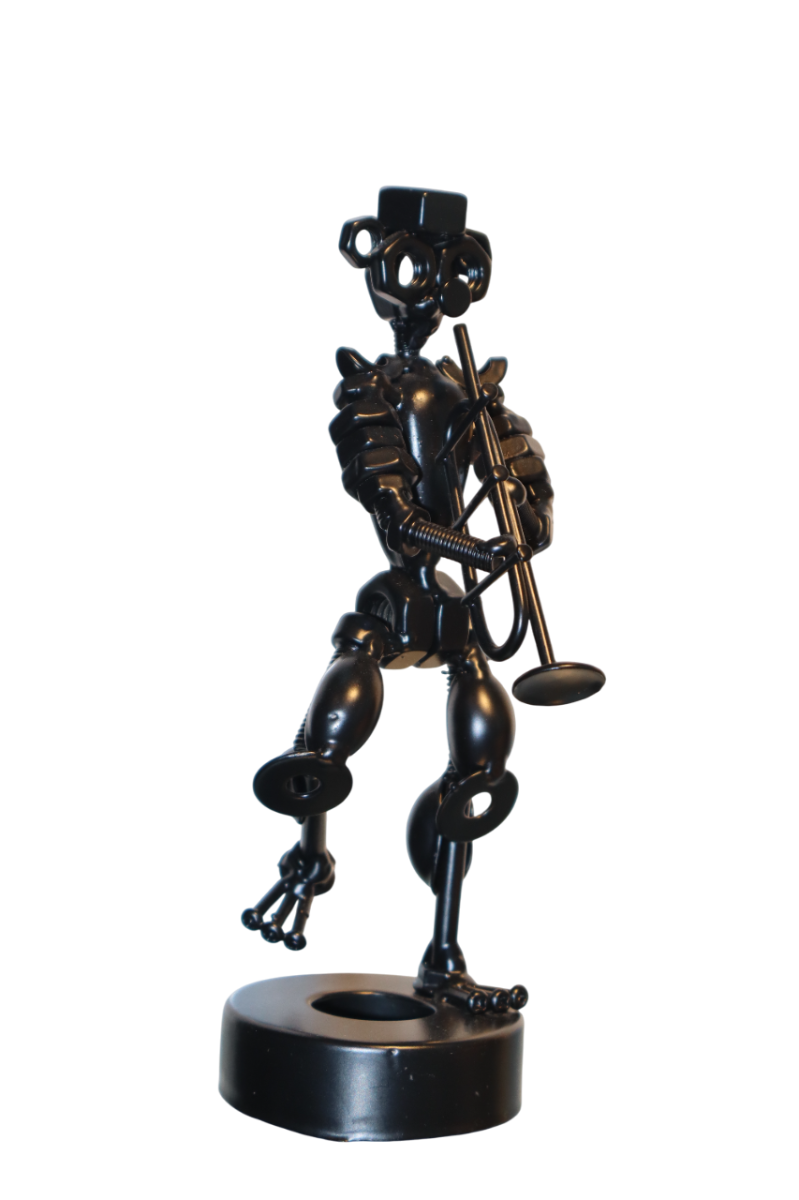 قطعة فنية معدنية رائعة بتصميم بسيط وأنيق، تنبض بالحياة والتميز. صُممت بتفاصيل دقيقة وحرفية عالية تجعلها قطعة فريدة في أي مكان.سطحها مجلفن لمزيد من المتانة، يحميها من عوامل الهواء والاستخدام اليومي. متينة للغاية ومصممة لتدوم طويلاً. قطعة ديكور مثالية تخطف الأنظار، تُضفي لمسة جمالية على مكتبك أو منزلك أو مكتبك، كما أنها هدية رائعة للأصدقاء والزملاء.