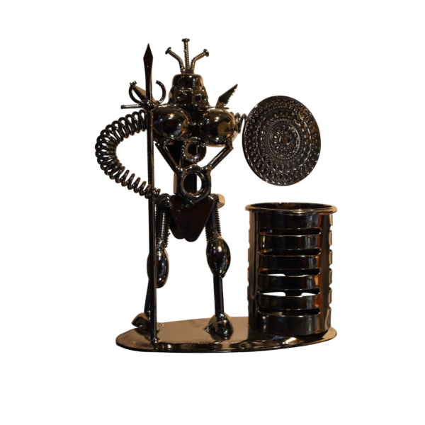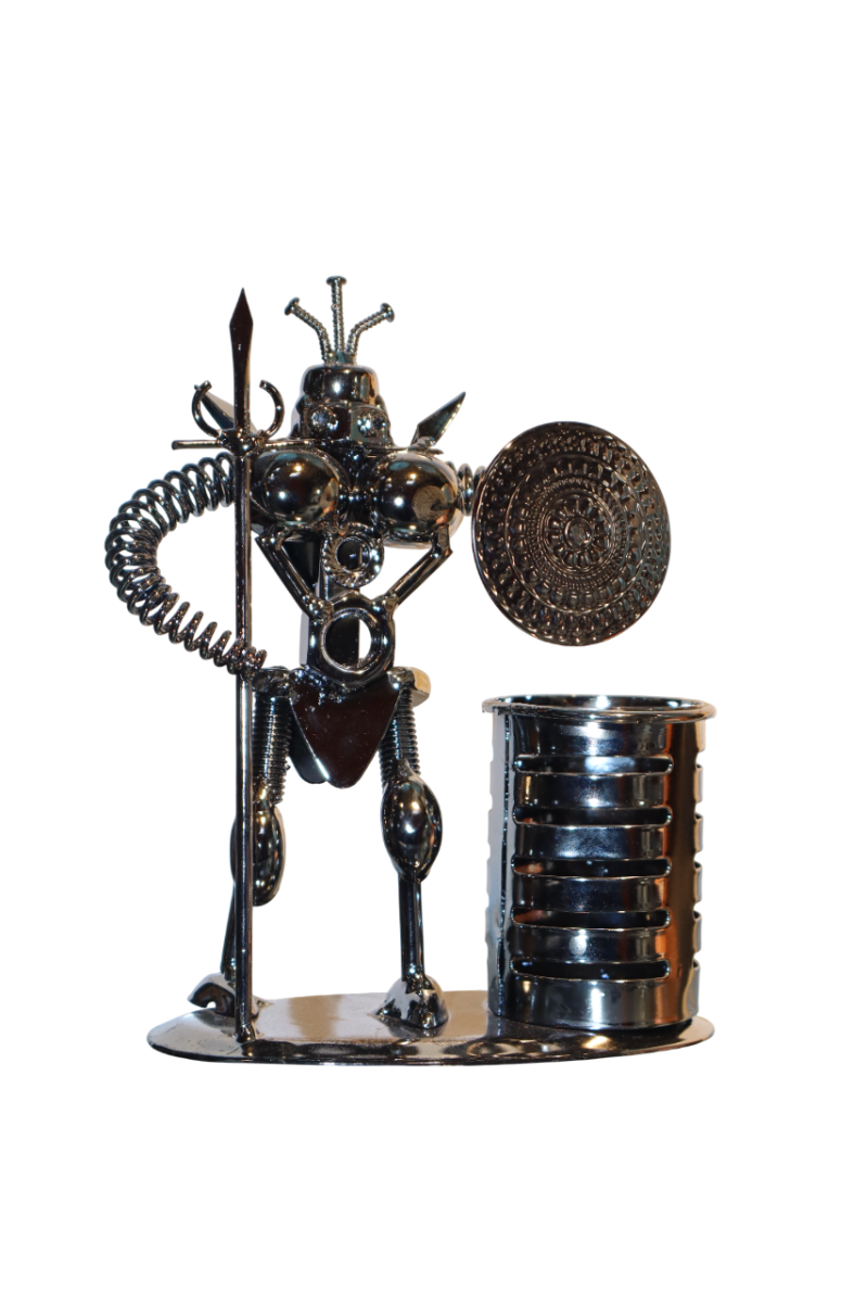 قطعة فنية معدنية رائعة بتصميم بسيط وأنيق، تنبض بالحياة والتميز. صُممت بتفاصيل دقيقة وحرفية عالية تجعلها قطعة فريدة في أي مكان.سطحها مجلفن لمزيد من المتانة، يحميها من عوامل الهواء والاستخدام اليومي. متينة للغاية ومصممة لتدوم طويلاً. قطعة ديكور مثالية تخطف الأنظار، تُضفي لمسة جمالية على مكتبك أو منزلك أو مكتبك، كما أنها هدية رائعة للأصدقاء والزملاء.