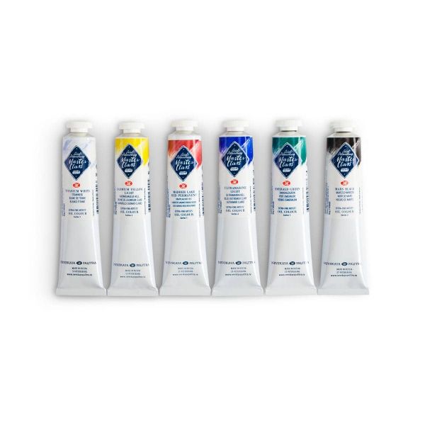 الدهانات الزيتية "Master Class" مصممة للفنانين المحترفين. يتم تصنيعها وفقًا لوصفات تقليدية تعتمد على أصباغ عالية الجودة ومادة رابطة - زيت بذر الكتان المعالج خصيصًا والراتنجات الطبيعية، مما يؤثر بشكل إيجابي على خصائص الدهانات. تمتزج الدهانات الدقيقة المشتتة ذات التركيز العالي من الصبغة بشكل مثالي مع بعضها البعض. لديهم اتساق سميك يسمح لك بالعمل فطيرة. يتم تحقيق سطوع ونقاء اللون ومقاومة الضوء العالية للدهانات بسبب استخدام المواد القيمة أصباغ غير عضوية (تراب ملون طبيعي، كادميوم صناعي، كوبالت، أكسيد الحديد) وأصباغ عضوية ذات جودة عالية. تتكون لوحة الألوان في المجموعة من 6 ألوان أساسية ضرورية للفنان للعمل مع. جودة فائقة الجودة. تسمح لوحة الألوان المتوازنة في المجموعة بإنشاء مجموعة واسعة من الأعمال الفنية. تعيين المحتويات 101 تيتانيوم أبيض| 200 ضوء كادميوم أصفر | 340 بحيرة مادر ريد بيرمانين| 501 ضوء أولتراماريني| 720 أخضر زمردي| 801 مصباح أسود