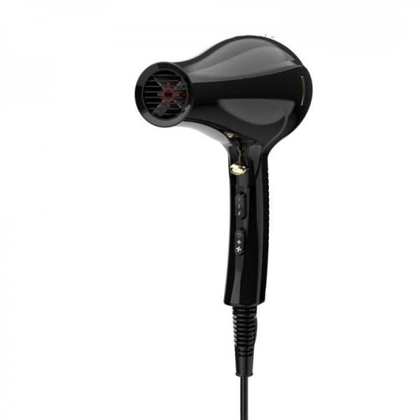 مجفف شعرالمواصفات: تيار متردد ٢٢٠-٢٤٠ فولت، ٥٠/٦٠ هرتز القدرة: ٢٠٠٠ واط محرك نحاسي نقي AC5413 سرعتان للهواء، ٣ درجات حرارة المادة: بولي أميد سلك نحاسي: ٢ × ١ مم × ٢ × ٢.٨ م مزود بحماية من الحرارة الزائدة الأبعاد: ٢٤.٥ × ٢٧ × ٩ سم