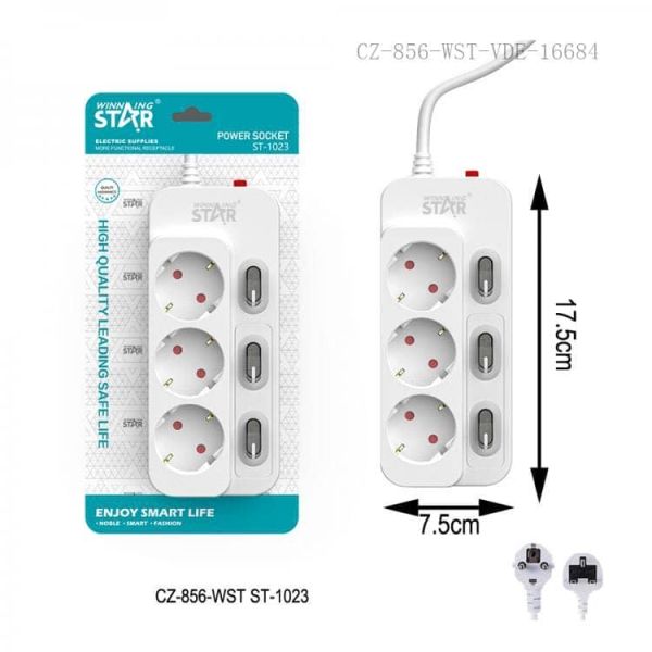 مشترك بالسلك 3عين 2متر 10امبير 2500وات Winning Star رقم ST-1023