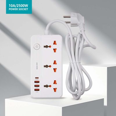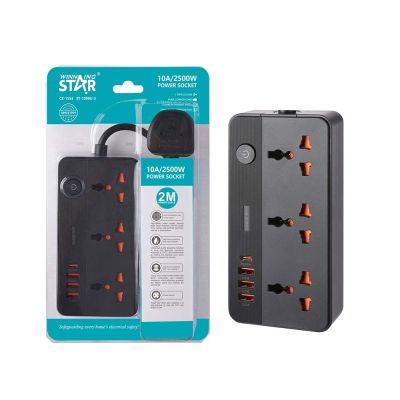 مشترك بالسلك 3عين ثلاثية 2متر 10امبير 2500وات + 3 USB للشحن + Winning Star 1 Type C رقم ST-1099U-3