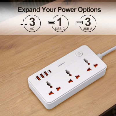 شريط طاقة WINNING ST-1099U-3 مزود بثلاثة منافذ USB ومخرج طاقة كهربائي عالمي من النوع C
