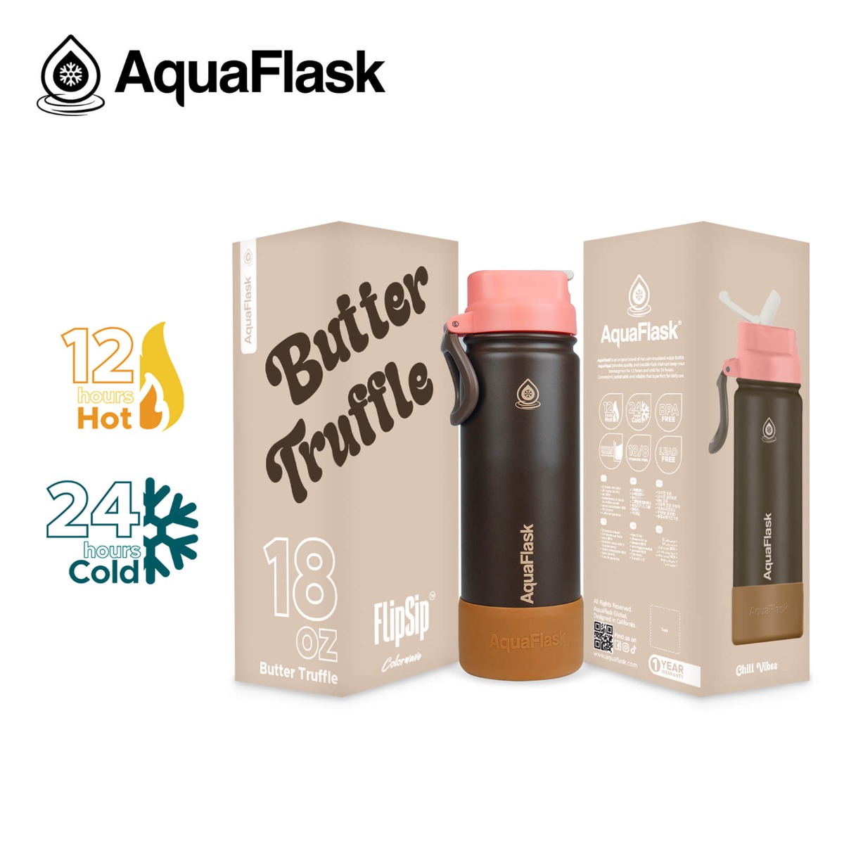 زجاجة مياه حرارى ستانلس ستيل بعليقة + قاعدة Colorwave Flip Sip Butter Truffle 18oz 532ml رقم AF-V272 AquaFlask