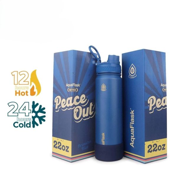 زجاجة مياه حرارى ستانلس ستيل بعليقة + قاعدة Retro Peace Out - Prussian Blue 22oz 650ml رقم AF-V100 AquaFlask