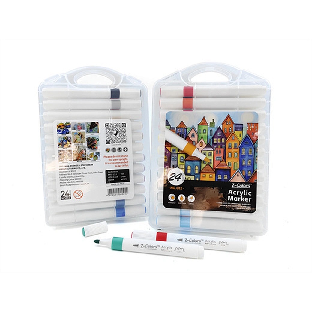 طقم الوان اكريلك 24لون سن مدور 2مم ع.بلاستيك Z-Colors رقم 602