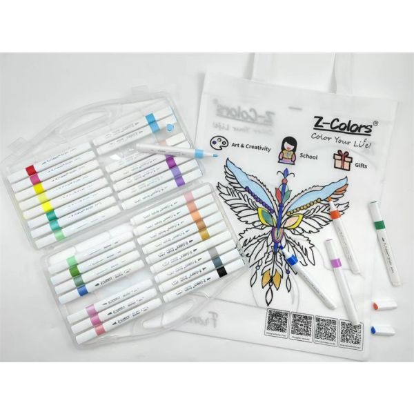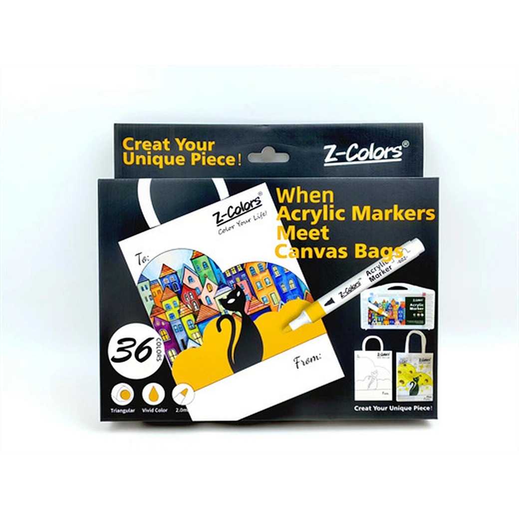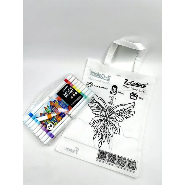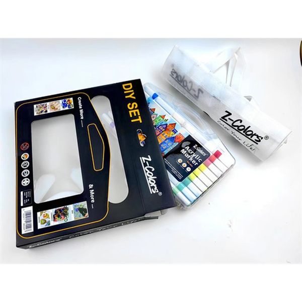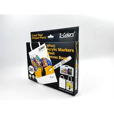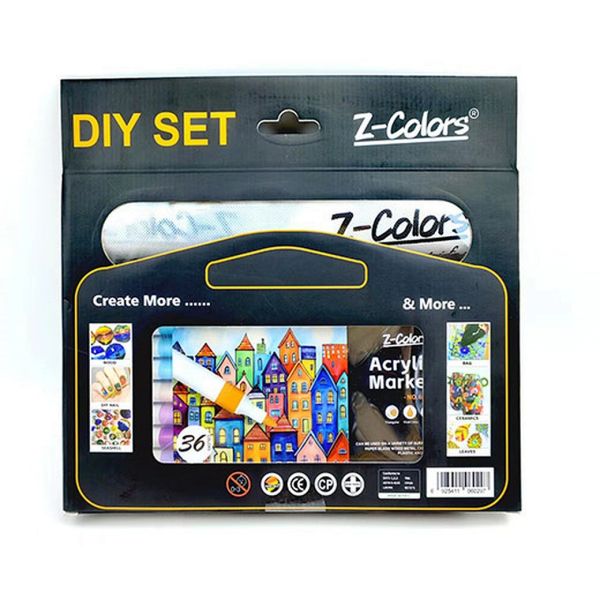 طقم الوان اكريلك 36لون سن مدور 2مم ع.كرتون + كانفاس باج Z-Colors رقم DIY602