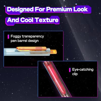 قلم Space Up Cyberpunk Gel Pen هو الخيار الأمثل لعشاق الأسلوب المستقبلي وراحة الكتابة. بفضل آلية النقر الصامتة، يتيح لك التركيز دون أي ضوضاء مزعجة. يرتفع وينخفض ​​مشبك "الباب" الفريد مع كل نقرة، مضيفًا لمسة عصرية وتقنية متطورة. يضمن تصميمه المريح راحة تامة حتى بعد ساعات من الكتابة. ينزلق رأس القلم المزدوج بتقنية الكرتين بسلاسة على الورق دون تسريب، بينما يمنع الحبر سريع الجفاف تلطيخ الورق.