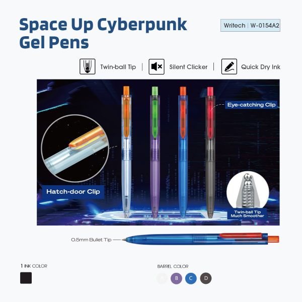 قلم جيل بسوستة 0.7مم سريع الجفاف سن بلية Writech Purple / Green Cyberpunk Space Up رقم W-0154A2/12-07-C-Ink BLUE