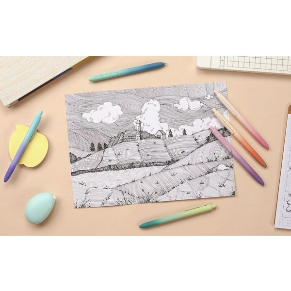 قلم حبر جاف أورورا، بحبر أزرق ورأس 0.7 مم. تتميز أقلام الحبر الجاف بتشكيلة واسعة من ألوان الحبر وكتابة واضحة. يتميز الحبر بانسيابيته، مما يجعله أكثر راحة في الكتابة ويتطلب ضغطًا أقل. مناسب للرسم والكتابة لساعات طويلة.قلم حبر جاف برأس 0.7 مم، بتصميم متدرج الألوان وحبر أزرق.يتميز بملمس ناعم للغاية وكتابة سلسة.اضغط على الزر لإخراج رأس القلم، وسيختفي المشبك. إنه ساحر!