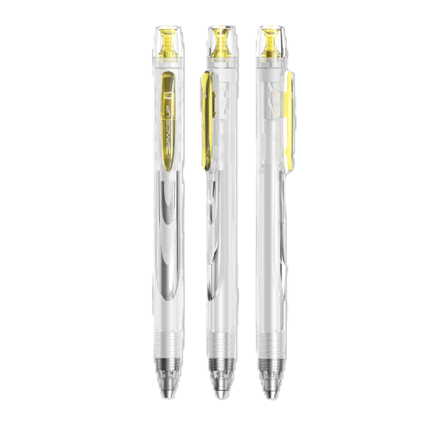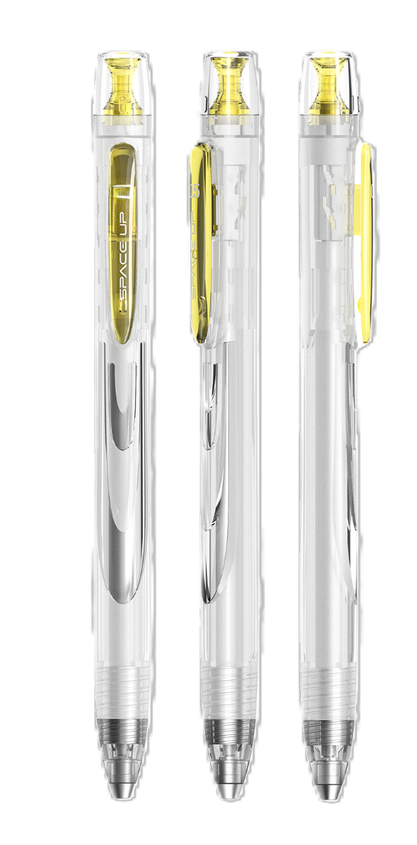 لا يوجد صوت نقرة، فقط لفّ. تمنع آلية اللفّ سن القلم من البروز عن طريق الخطأ وتلطيخ الورق. تصميم فريد لمشبك القلم على شكل باب، يتحرك لأعلى ولأسفل عند لفّ المكبس. هيكل صامت حاصل على براءة اختراع يقلل من تشتيت انتباه الآخرين، خاصة في بيئة هادئة. تقنية مركز الثقل المنخفض توفر تحكمًا وثباتًا فائقين لكتابة متوازنة ودقيقة.