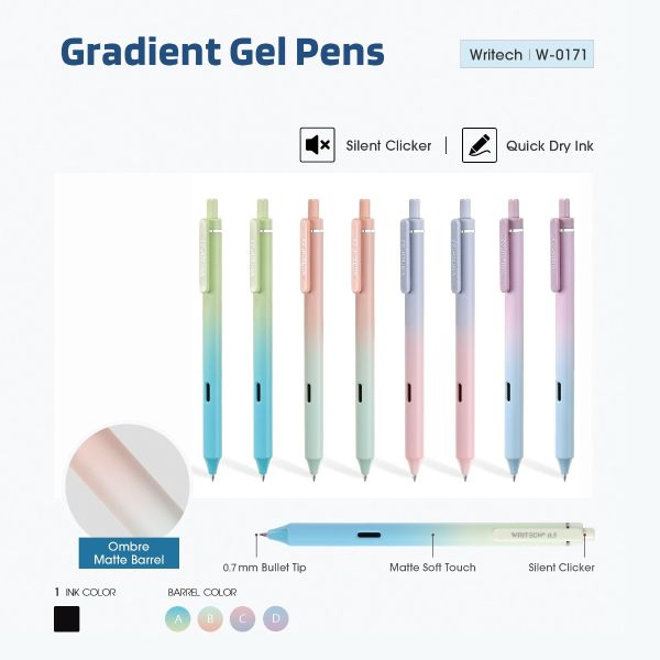 قلم جيل بسوستة 0.7مم سريع الجفاف سن بلية Writech Green Blue Ombre Gradient رقم W-0171/12-A-Ink BLUE-07
