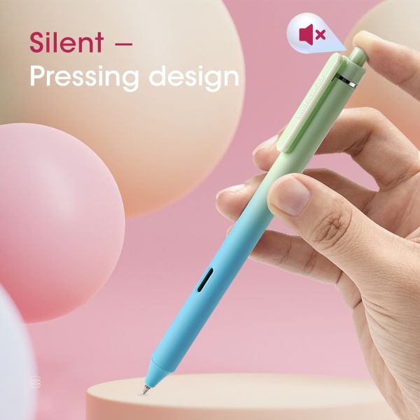 سنّ قلم رصاصي 0.7 مم بحبر سريع الجفاف، فائق النعومة والدقة، لا انقطاع ولا تلطخ.يُقلل نظام الضغط الصامت من الإزعاج للآخرين، خاصةً في الأماكن الهادئة.