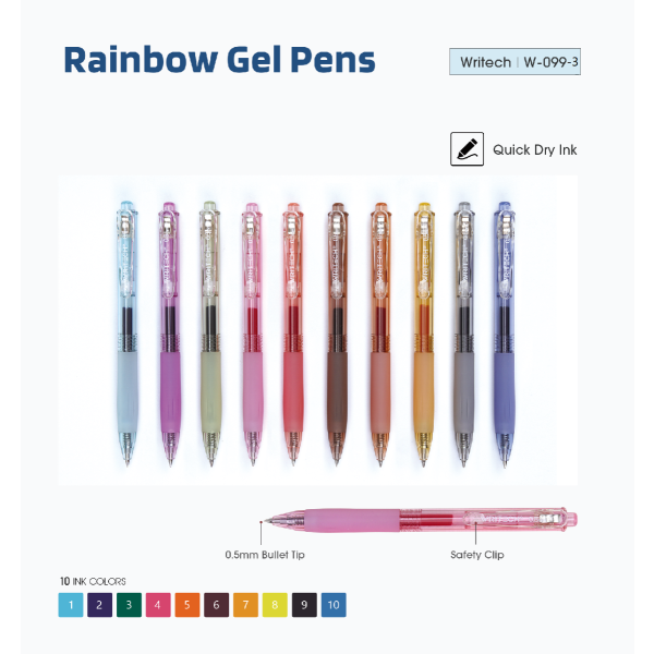 قلم جيل بسوستة 0.7مم سريع الجفاف سن بلية Writech Orange Rainbow رقم W-099B/12-7-07