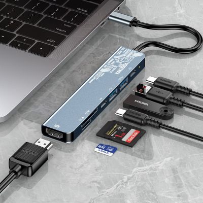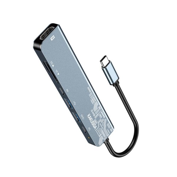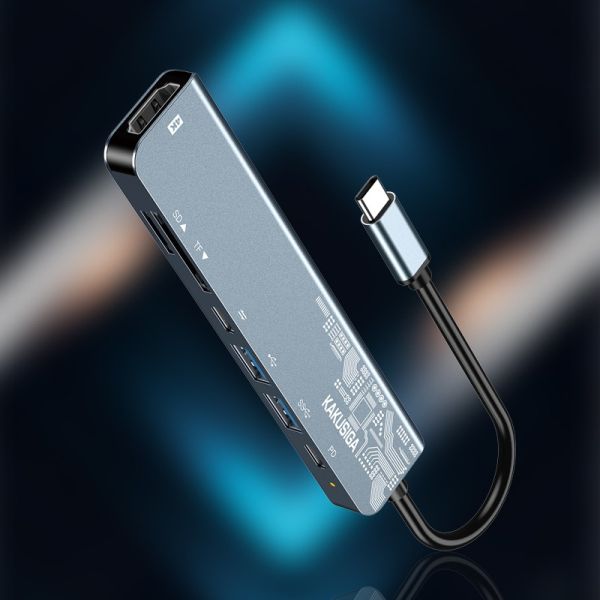 محول KAKUSIGA متعدد الوظائف 7 في 1 بواجهة Type-C للهواتف المحمولة/الأجهزة اللوحية/أجهزة الكمبيوتر المحمولة/أجهزة العرض/الشاشات