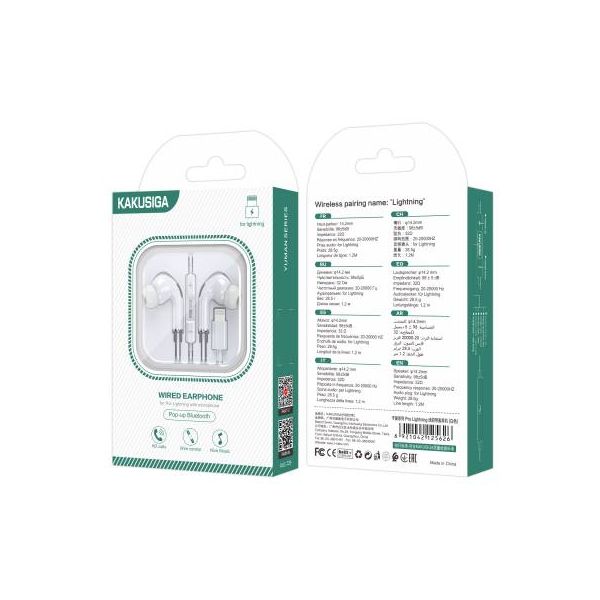 المادة: TPE نوع سماعة الرأس: داخل الأذن نوع القابس: لايتنينج (بلوتوث منبثق)؛ مبدأ الصوت: ملف متحرك قطر السماعة: 14.2 مم طول السلك: 1.2 متر قدرة السماعة: 3-5 ميغاواط نطاق استجابة التردد: 20-50 كيلوهرتز جودة صوت أصلية، مظهر عصري نافذة بلوتوث منبثقة (منفذ لايتنينج) سيليكون ناعم، مريح للارتداء تحكم ذكي بالأزرار، مكالمات عالية الوضوح
