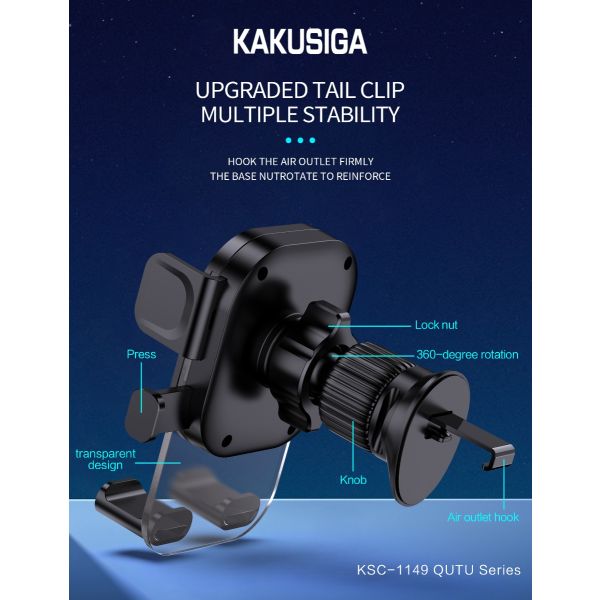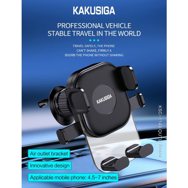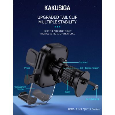 حامل هاتف محمول KAKUSIGA KSC-1149 مصنوع من مادة سميكة، يتميز عمر خدمة طويل، ويعمل بضغطة زر واحدة، يُثبت على فتحة تهوية السيارة.