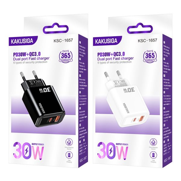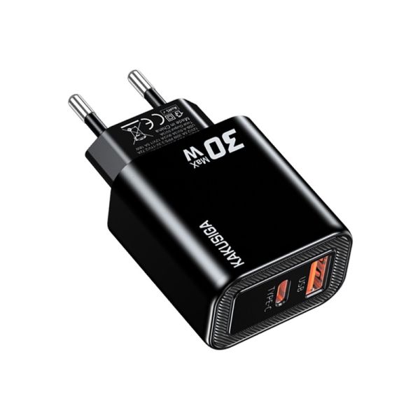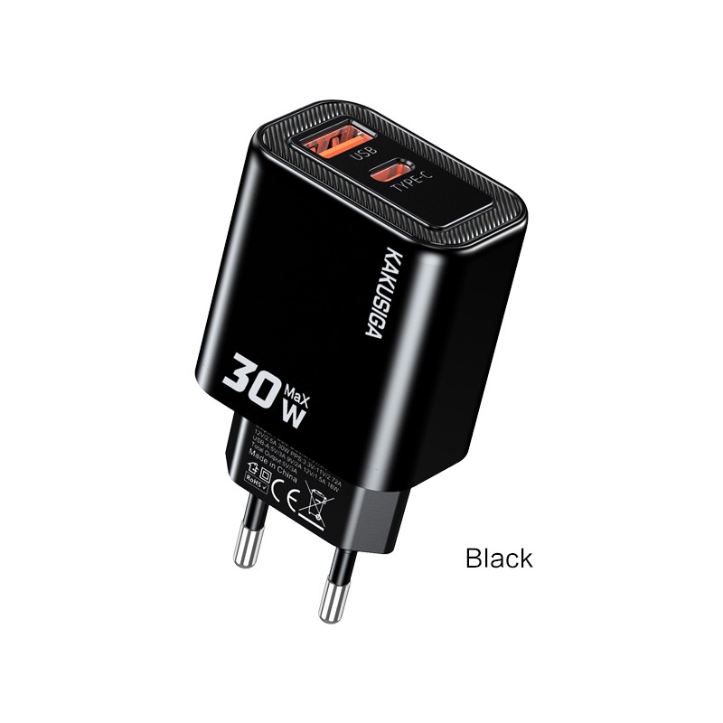 شاحن موبايل سريع 2 مخرج KAKUSIGA Black Type-C to USB 30W رقم KSC-1657