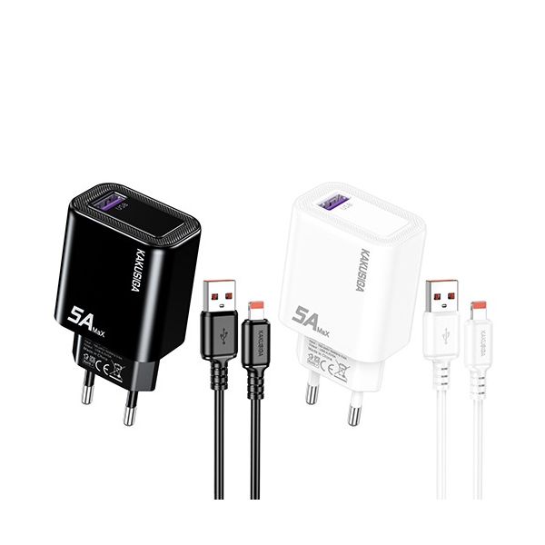 شاحن موبايل سريع بالكابل 1 مخرج KAKUSIGA USB to Lightning 5A رقم KSC-1654-1