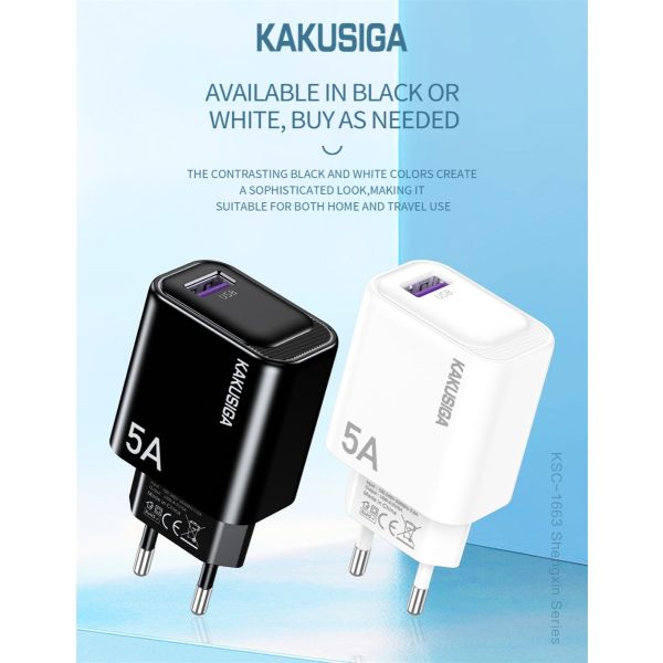 شاحن موبايل سريع 1 مخرج KAKUSIGA White USB 5A رقم KSC-1653