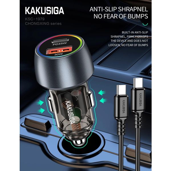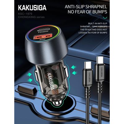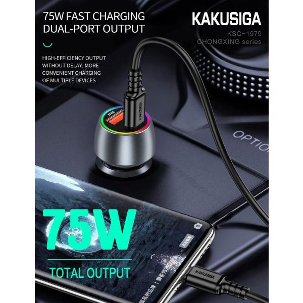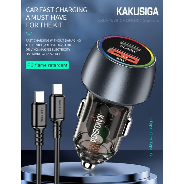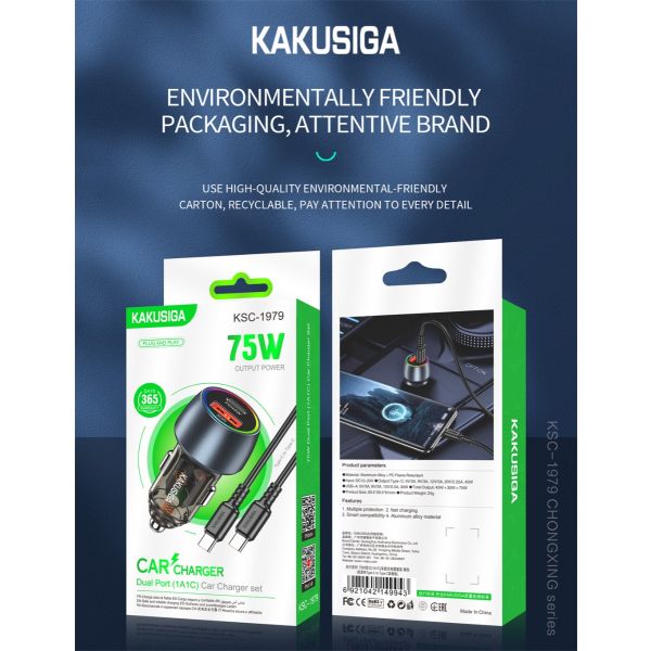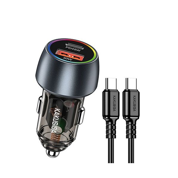شاحن موبايل للسيارة 2 مخارج 75 وات KAKUSIGA Type-C to Type-C رقم KSC-1979