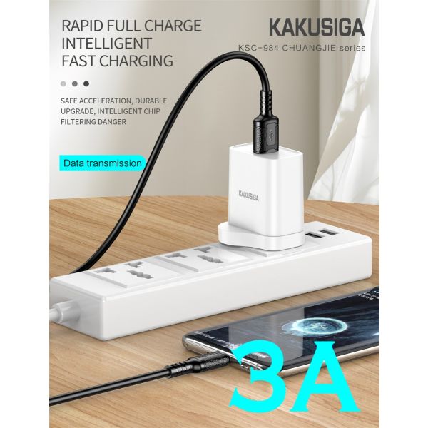 كابل شاحن 1 متر سيليكون KAKUSIGA USB to Type-C 3A رقم KSC-984-1