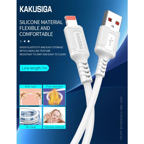 كابل شاحن 1 متر سيليكون KAKUSIGA USB to Lightning 3A رقم KSC-984-3