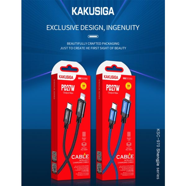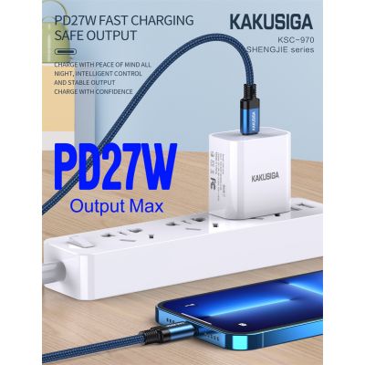 كابل شاحن 1 متر KAKUSIGA Type-C to Lightning PD27W رقم KSC-970-3