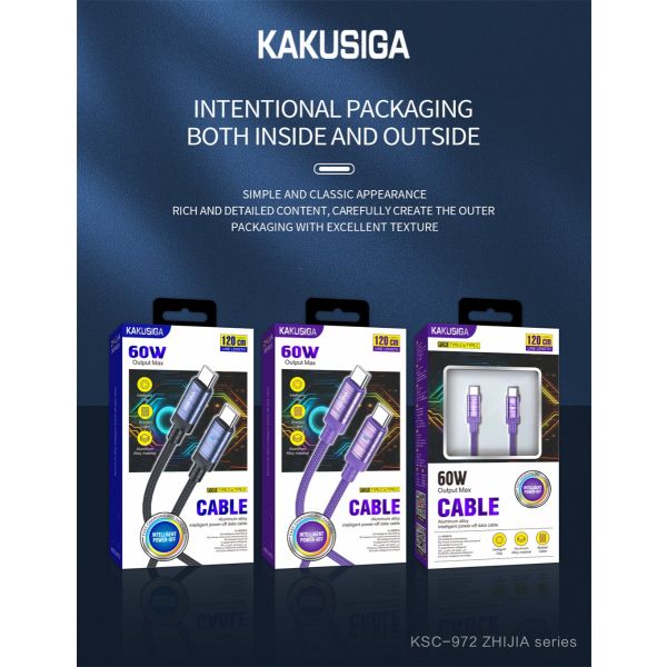 كابل شاحن 1.2متر KAKUSIGA Type-C to Type-C 60W رقم KSC-972-3