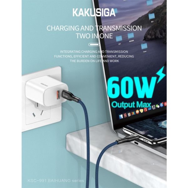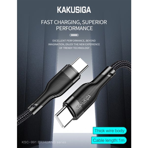 كابل شاحن سريع 1 متر 60 وات KAKUSIGA Type-C to Type-C رقم KSC-991-5