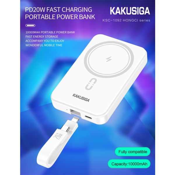باور بانك KAKUSIGA White PD20W+22.5W 10000mAH Wireless رقم KSC-1092