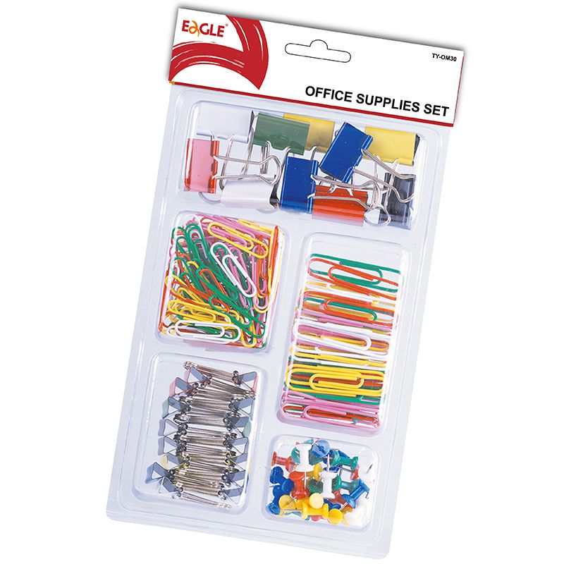مجموعة مشابك إضافية من إيجل TY-OM30 اللون: متنوع 50 قطعة من مشابك ورق مطلية بالفينيل بقطر 50 مم 100 قطعة من مشابك ورق مطلية بالفينيل بقطر 33 مم 30 قطعة من دبابيس الضغط الملونة 10 قطع من مشابك الملفات بقطر 25 مم 15 قطعة من مشابك الملفات بقطر 19 مم عدد المطبوعات (للدباسة/الثقب)