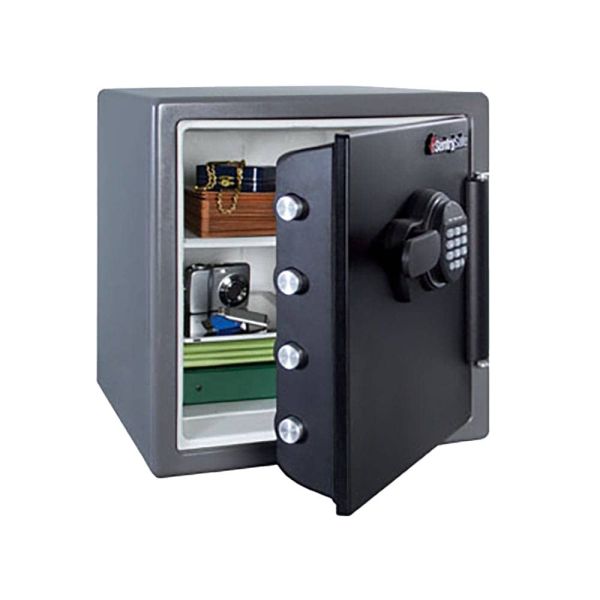 توفر SentrySafe Digital Water and Fireproof Safe SFW123FSC الحماية لمستنداتك المهمة والوسائط الرقمية والأشياء الثمينة الأخرى. تم تصميم SFW123FSC لحماية أغراضك في حالة نشوب حريق أو فيضان. مع رف المفاتيح وصينية الباب وجيب الباب، تعد هذه الخزنة مثالية للحفاظ على أغراضك التي لا يمكن استبدالها آمنة ومنظمة. سمات القفل الرقمي يستخدم نظام القفل الرقمي الذي يعمل بالبطارية رمزًا قابلاً للبرمجة مكون من 1 إلى 8 أرقام. تختلف خيارات المستخدم المتعددة حسب الطراز. 4 براغي كبيرة مقاس 1 بوصة أكبر بنسبة 60% من الخزائن التقليدية حماية الوسائط الرقمية قم بحماية الأجهزة اللوحية والهواتف والأقراص الصلبة الخارجية وبطاقات الذاكرة ومحركات أقراص USB والأقراص المضغوطة وأقراص DVD وأجهزة التخزين الإلكترونية الأخرى. شريط مفصلي مقاوم للتطفل يعزز شريط المفصلات المقاوم للنزع باب الخزنة لمزيد من الحماية ضد السرقة. البناء الصلب هيكل فولاذي متين لحماية دائمة وموثوقة. التنظيم الداخلي رف للمفاتيح، وصينية باب، وجيب باب عميق، ورف قابل للتعديل الإضاءة الداخلية توفر الإضاءة الداخلية رؤية أفضل في الأماكن ذات الإضاءة الخافتة، بحيث يمكنك الوصول بسهولة إلى العناصر الخاصة بك دون إضاءة إضافية. بولت داون هاردوير يضمن عدم قدرة اللصوص على إزالة الخزنة بسهولة من منزلك أو مكتبك.