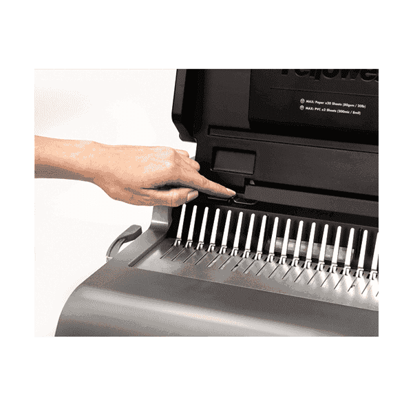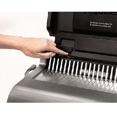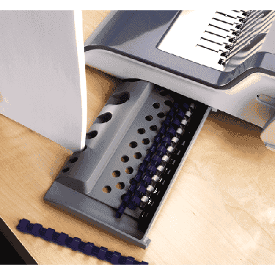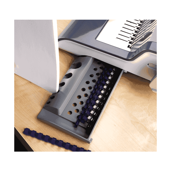 يربط المستندات بمشط بلاستيكي مثالية لإنشاء التقارير والأدلة وغيرها من وثائق الجودة تعمل بالكهرباء لسهولة التثقيب يتم ثقب 20 ورقة في المرة الواحدة باستخدام 21 فتحة ثقب يربط ما يصل إلى 500 صفحة صينية تخزين المشط ودليل حجم المشط التحميل العمودي