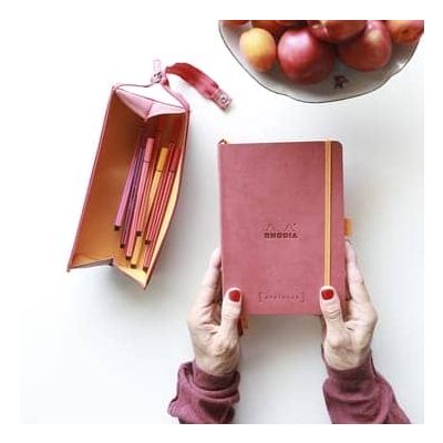 حافظة أقلام Rhodiarama من الجلد الصناعي الإيطالي مقاس 23x5x5 سم هي الإكسسوار الأساسي لتخزين الأقلام وأقلام التلوين وأقلام الرصاص، وهي أفضل أصدقاء الورق! الجزء الخارجي من الجلد الصناعي الإيطالي، الشعار منقوش، خياطة حقيقية، بطانة داخلية من البوبلين البرتقالي، سحاب طويل (يمكن استخدامه كمقبض عند ربطه بزر كبس)، فتحة مسطحة للاستخدام كحقيبة أقلام