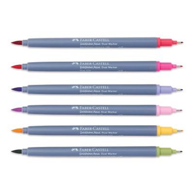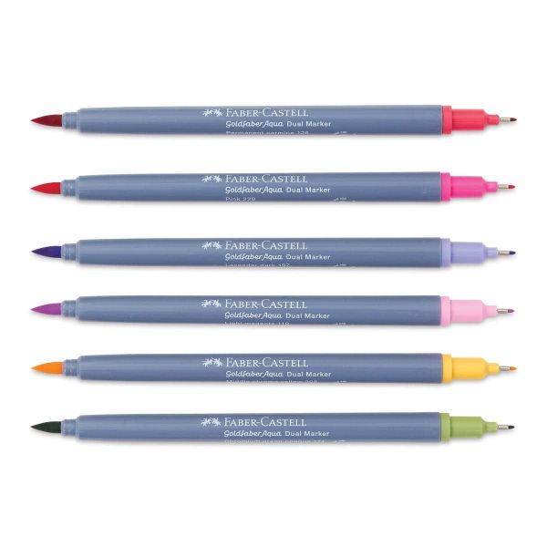 علامة صبغية ذات أساس مائي مع شريحتين رأس فرشاة ناعم ومرن للأعمال الفنية وطرف محدد مغلف بالمعدن لتحديد الخطوط والتفاصيل عرض الخط: طرف رفيع 0.6 مم قابل للذوبان في الماء بالكامل خالية من الخطوط لا ينزف من خلال الورق عديم الرائحة، خالي من الأحماض، درجة حموضة محايدة محفظة 6 الألوان: 107، 112، 119، 121، 197، 229 الأغطية والأسطوانة مصنوعة من مادة معاد تدويرها بنسبة 100% وقد تظهر اختلافات في اللون بسبب الإنتاج.