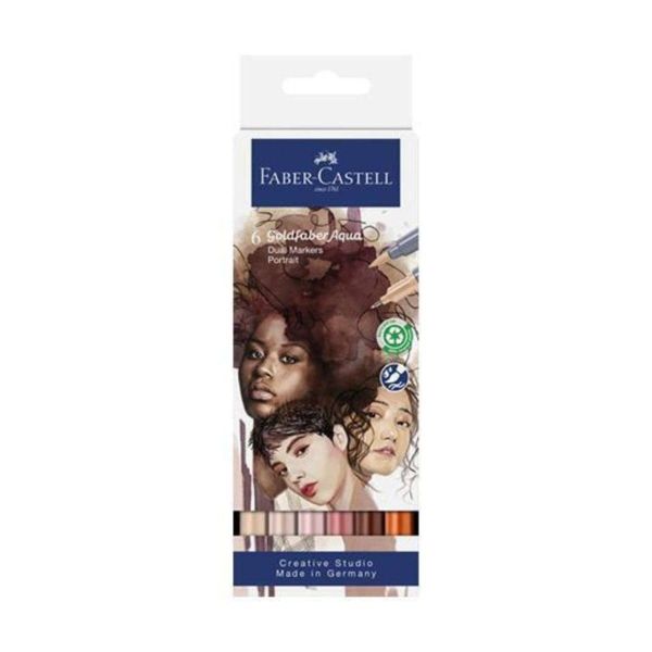 علامة صبغية ذات أساس مائي مع شريحتين رأس فرشاة ناعم ومرن للأعمال الفنية وطرف محدد مغلف بالمعدن لتحديد الخطوط والتفاصيل عرض الخط: طرف رفيع 0.6 مم قابل للذوبان في الماء بالكامل خالية من الخطوط لا ينزف من خلال الورق عديم الرائحة، خالي من الأحماض، درجة حموضة محايدة محفظة من 6، الألوان: 114، 116، 186، 195، 281، 283 الأغطية والأسطوانة مصنوعة من مادة معاد تدويرها بنسبة 100% وقد تظهر اختلافات في اللون بسبب الإنتاج.