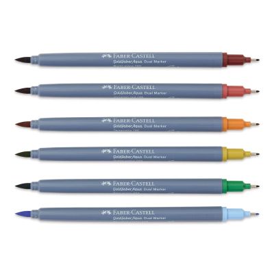 علامة صبغية ذات أساس مائي مع شريحتين رأس فرشاة ناعم ومرن للأعمال الفنية وطرف محدد مغلف بالمعدن لتحديد الخطوط والتفاصيل عرض الخط: طرف رفيع 0.6 مم قابل للذوبان في الماء بالكامل خالية من الخطوط لا ينزف من خلال الورق عديم الرائحة، خالي من الأحماض، درجة حموضة محايدة محفظة 6 الألوان: 186، 190، 267، 269، 283، 446 الأغطية والأسطوانة مصنوعة من مادة معاد تدويرها بنسبة 100% وقد تظهر اختلافات في اللون بسبب الإنتاج.